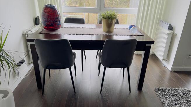 4 nowe welurowe krzesła w grudniu zakupione. Wysokość 87 cm, głębokość siedziska 45 cm
