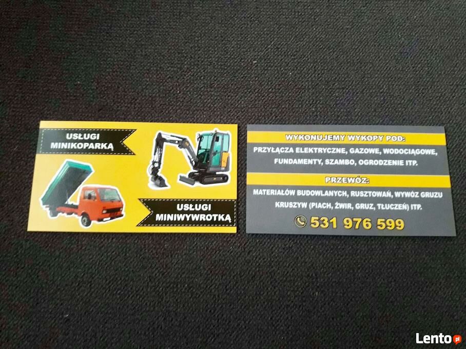 Witam posiadam minikoparek wraz z tym mini wywrotka:) wykonuje usługi związane z wykopami i przywozem jak i wywozem :) może ktoś chętny atrakcyjne ceny :) pozdrawiamSprawdź zainteresowanie tym ogłoszeniem